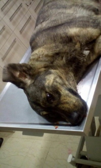 Hello! Yesterday we had an unpleasant incident at the shelter. One of Eva's most beloved dogs had an abscess, to the point where it was not obvious. This burst and a deep hole was created. Sh is a very fearful animal who only trusts me. I took the poor animal to the vet, he cleaned the wound and stitched it up. It was the first time in 10 that she went out and got in the car and she was very nervous. Finally, everything shows that the surgery went well and today she ate with great appetite and received her treatment.