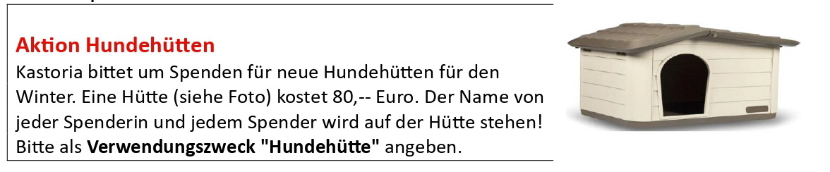Oktober 2024: Hier sehen Sie die neuen Hundehütten in Kastoria (Griechenland), die wir Dank der vielen Spenden kaufen konnten!! Vielen Dank allen Spendern und Spenderinnen!!!